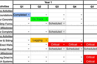 Using a "stoplight" report to describe progress, status, and potential issues